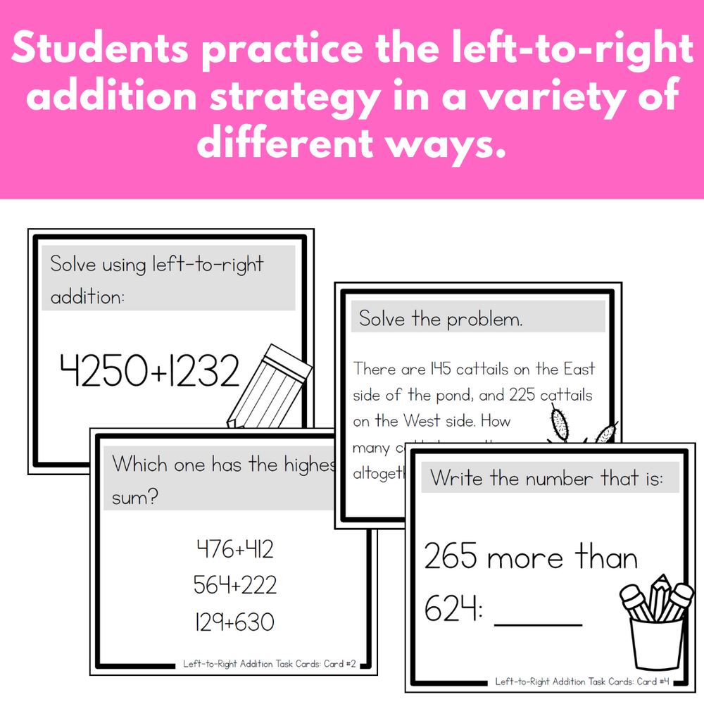 Addition Strategy Task Cards: Left-to-Right Addition (Fourth Grade)