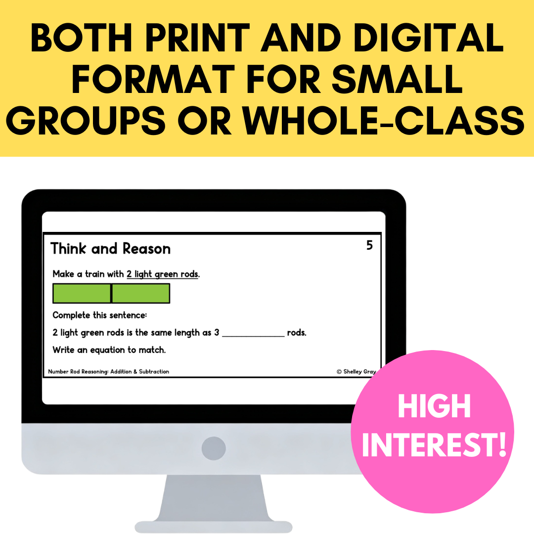 Perfect for small-group instruction, intervention, or whole-class problem-solving, these activities provide structure and ideas for manipulative use, so you can facilitate an engaging lesson without the guesswork. Additionally, these tasks may act as a springboard for you, giving you additional ideas and inspiration for using number rods or Cuisenaire rods in your classroom!