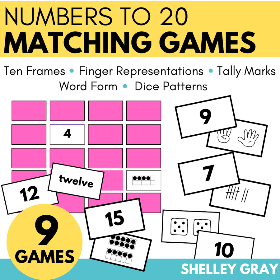 Memory Math Games – Numbers 1–20 with Dice, Ten Frames, Tally Marks, Word Form